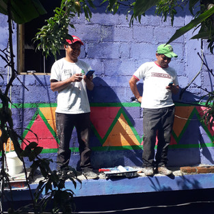 A la fin de ces 2 premières semaines d’acclimatation, notre technique de peinture est rodée et nous avons fait notre place dans l’équipe même si pour le moment c’est principalement avec Maynor que nous échangeons le plus. Matins, midis et soirs nous passons à l’office pour saluer tout le monde et tailler le bout de gras. L’équipe nous taquine et s’inquiète de notre bonne forme. Par la suite, nous sommes souvent séparés pour donner un coup de main à Placido, Francisco, Maynor, Juan-Carlos I ou Sixto, et évoluons ainsi d’un foyer à un autre. Cela nous permet de tisser des liens avec chaque peintre et de prendre nos marques auprès des villageois. Nous restons au minimum une semaine à chaque fois dans une maison ce qui nous donne le temps d’observer les scènes de vie qui rythment les journées de ces familles intergénérationnelles.